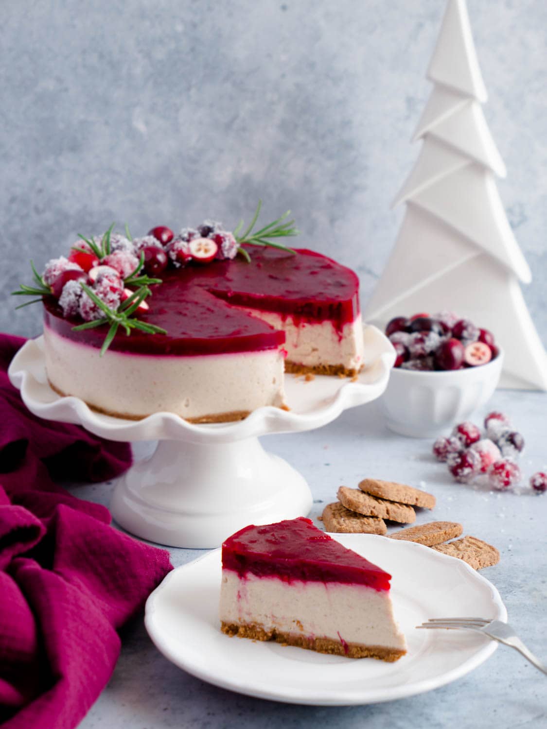 Veganer No Bake Spekulatius-Cranberry-Cheesecake – ein Träumchen auf der weihnachtlichen Kaffeetafel